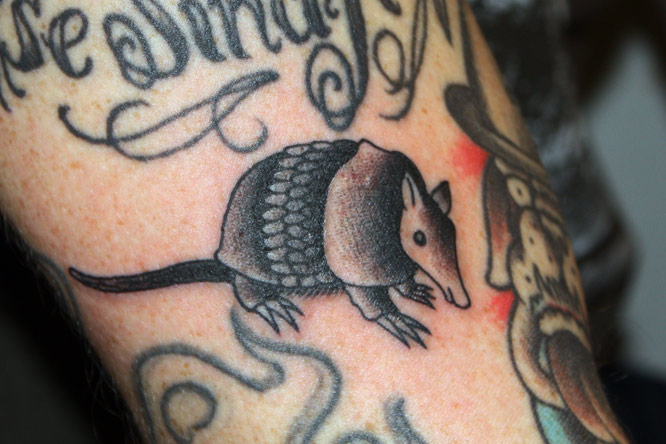 I did this armadillo on Jussis arm. It’s a flash re-draw by Tilt, from a book called Classic Flash. This was a fun tattoo.