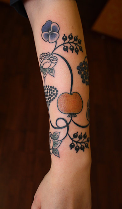 Kuvio perustuu Birger Kaipiaisen suunnittelemaan koristelautaseen.