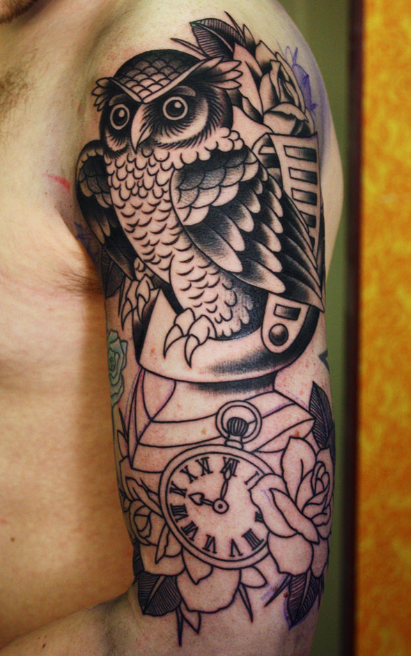 Pöllö, kello ja ruusuja