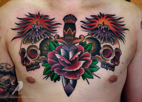 This entry was posted on 20/09/2011 by Jussi Kokkarinen. It was filed under Uncategorized and was tagged with Jussi Kokkarinen, kalloja, kynttilä, Legacy Tattoo, pääkallo, ruusu, tikari.