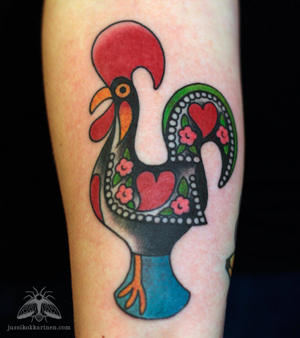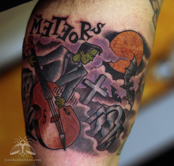 Tämäkin oli peitekuva. Onneksi uusi kuva sai olla reippaasti isompi. Ja koska aikaisempaa tatuointia oli vaalennettu laserilla muutama kerta, ei peitekuvasta tarvinnut tehdä niin mustaa.