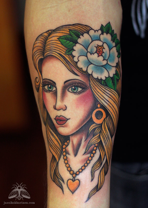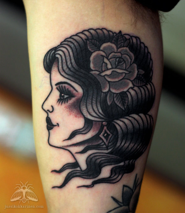 Naishahmot ovat kautta aikojen olleet suosittuja tatuointiaiheita. Tässä muutamia tytön päitä, mitä olen päässyt tekemään lähiaikoina.