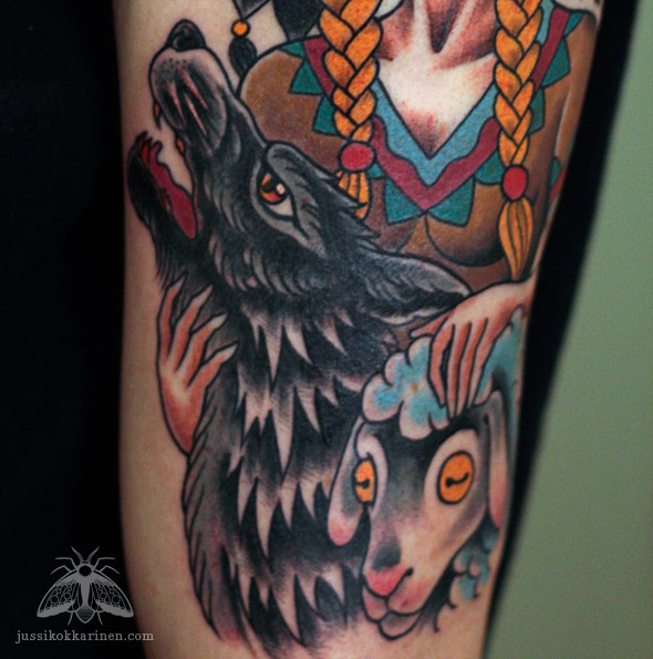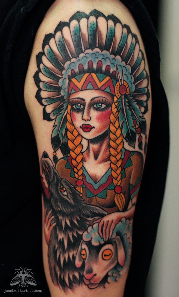 Intiaanityttö, susi ja lammas