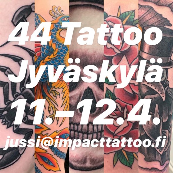 Vierailen 11.–12.4.2019 Jyväskylän 44 Tattoossa. Laita sähköpostia jos ajanvaraus kiinnostaa: jussi@impacttattoo.fi.