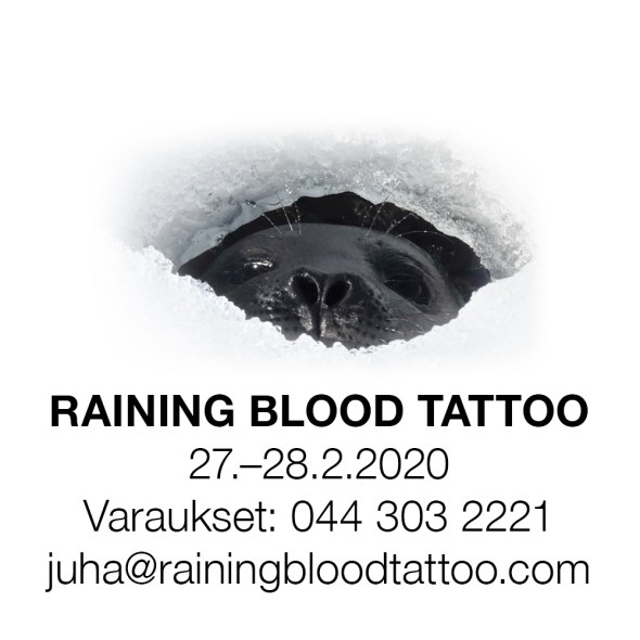 Vierailen Raining Blood Tattoossa 27.–28.2.2020. Jos haluat varata ajan vierailulle, niin ota yhteyttä Juhaan: juha(a)rainingbloodtattoo.com / 044 303 2221