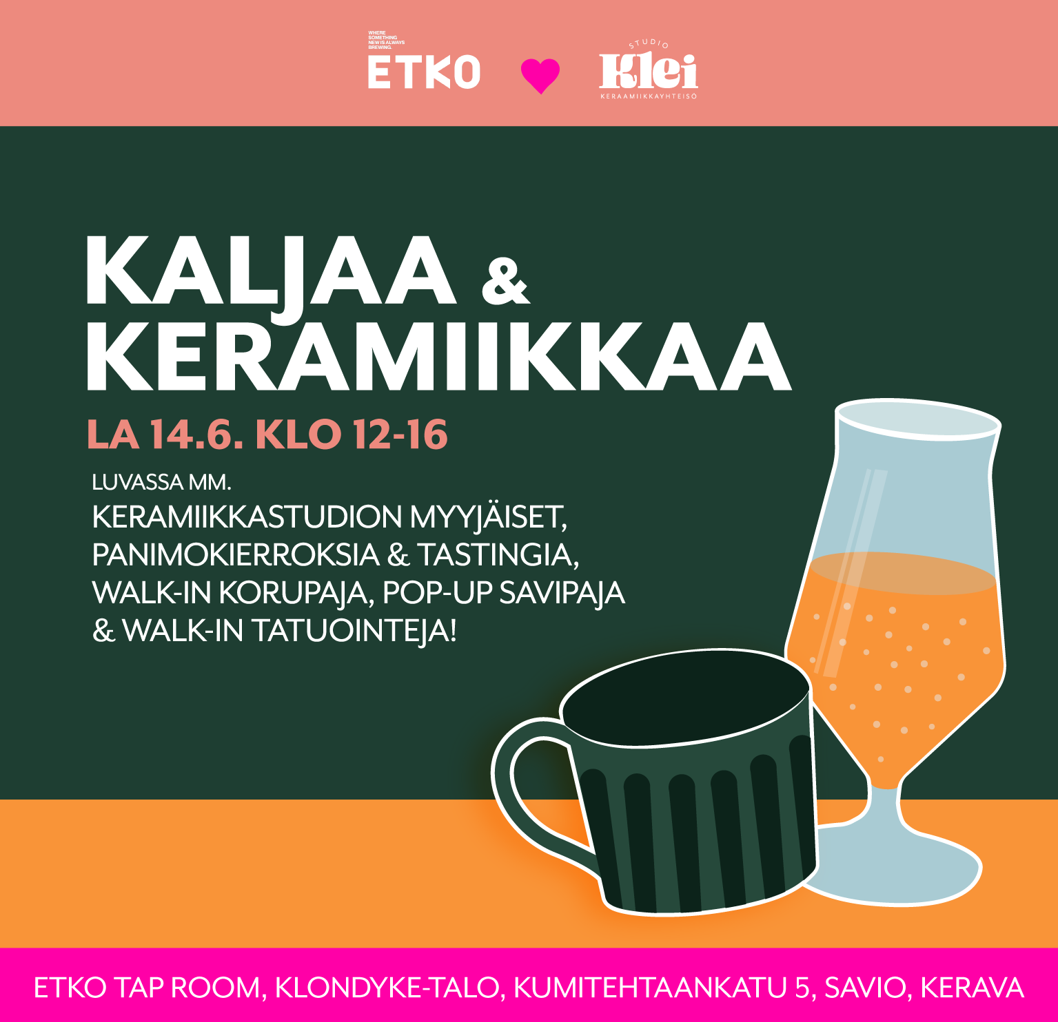 Teen tatuointeja keramiikkastudio Klei ja Etko Brewinging järjestämässä Kaljaa ja Keramiikkaa -tapahtumassa Etkon tap roomilla 14.6.2025 klo 12–16! Ensisijaisesti tatuoin tilaisuutta varten piirretyistä valmiista malleista, mitkä löytyy alempana. Jos on aikaa, niin muutkin walk-in meininkiin sopivat tatuoinnit onnistuvat. Klondykellä myös Klein keramiikkaa & savipaja, Etkon panimokierroksia & olut tasting ja Bad Idea Design tuotteita & korupaja. Saviolle siis!