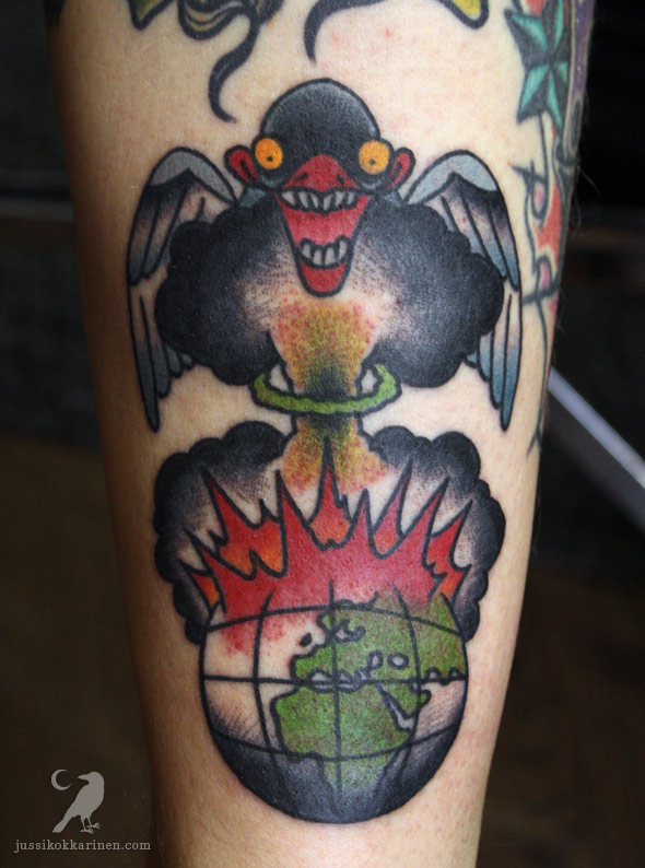 Ydinräjähtävä maapallo ja naurava naurulokki. Tää “vaikea” vetylokki nauratti niin, että sitä oli välillä tosissaan vaikea linjata.